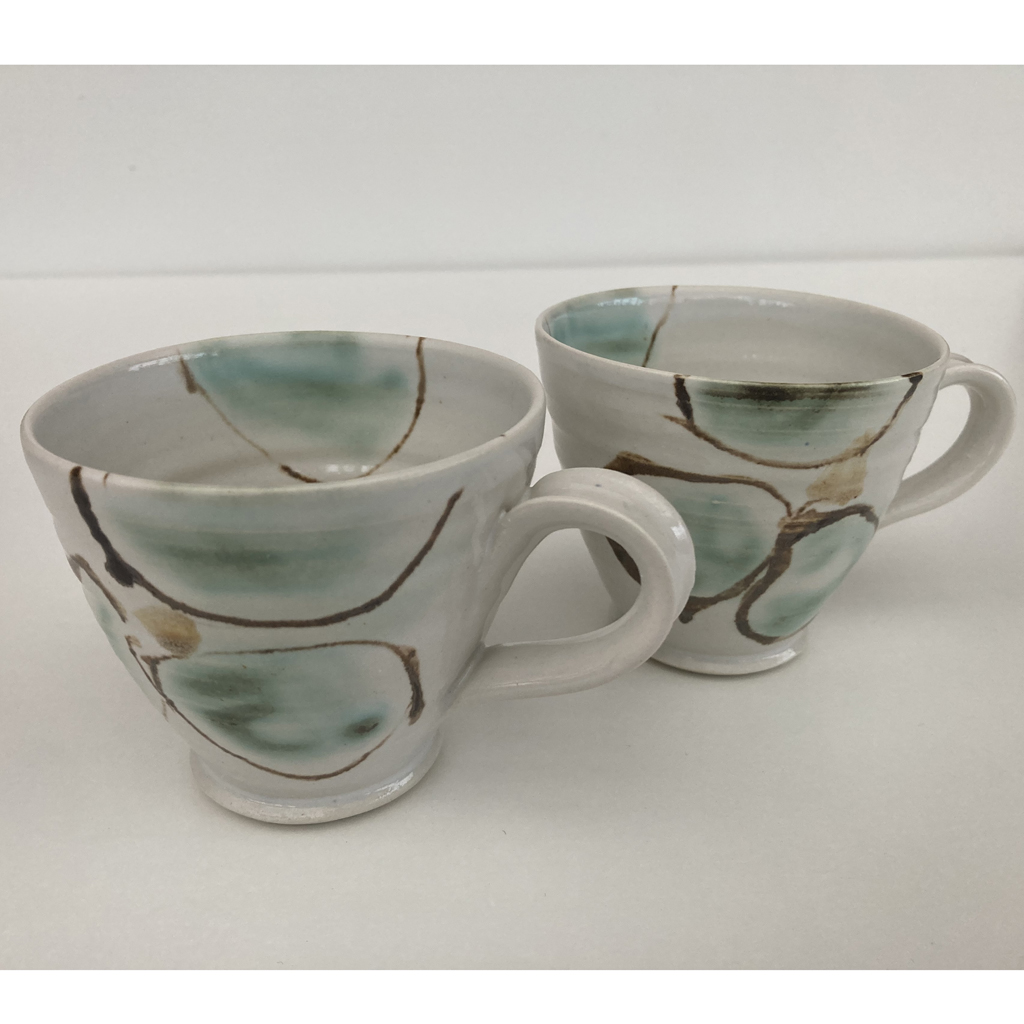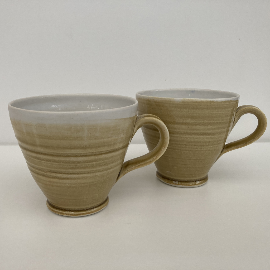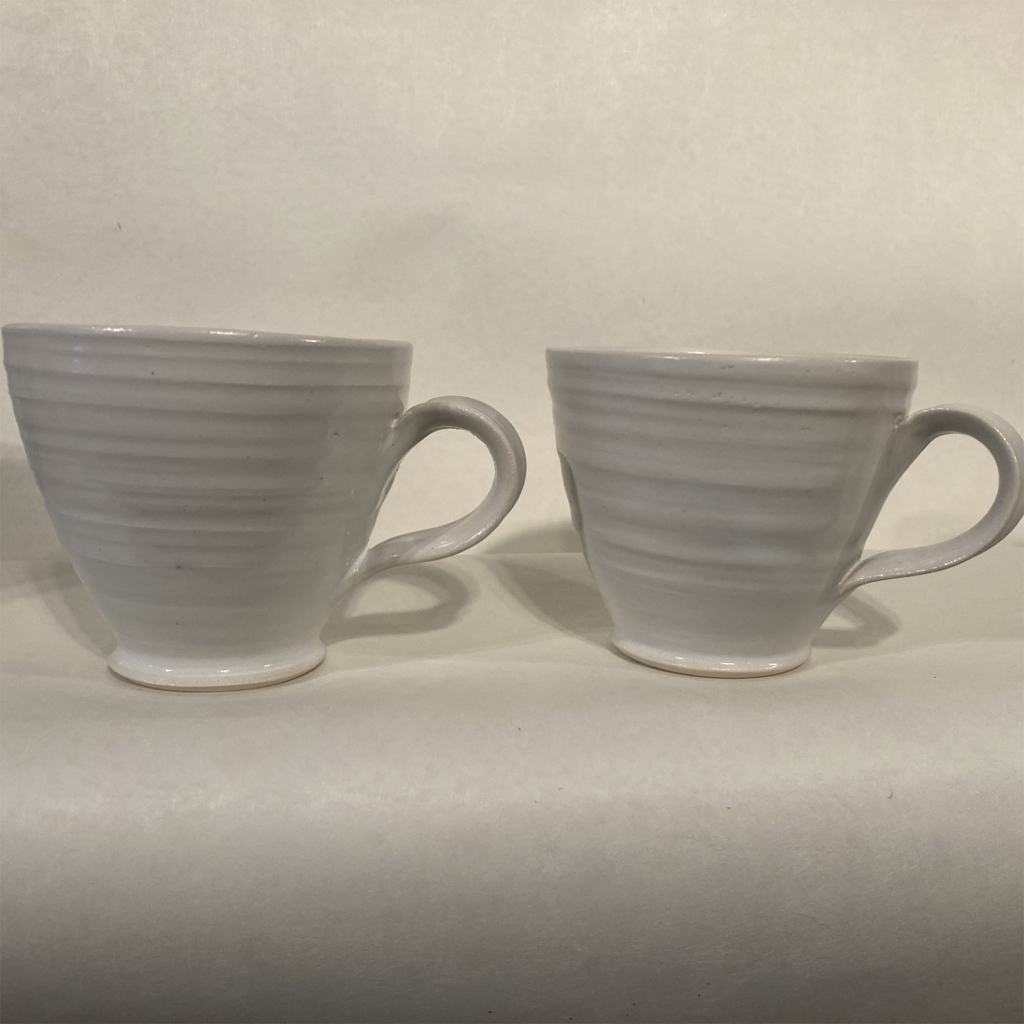 Drejad mugg i vit stengodslera.