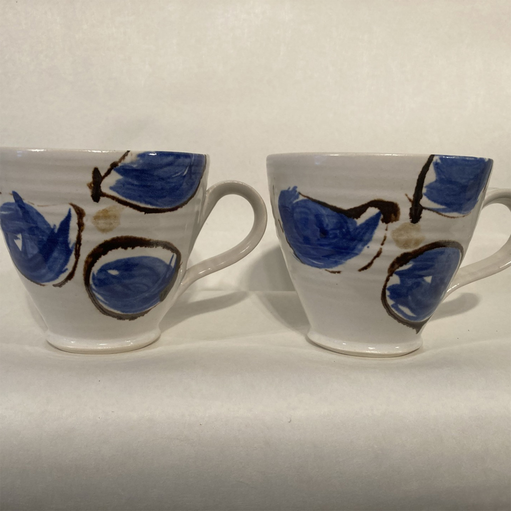 | Färg | Vit med grön dekor, Vit med blå dekor, Brunsvart glasyr med vit insida, Blå glasyr, Vit glasyr, Gul, Blå med ränder |